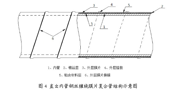 超高分子钢丝网骨架聚乙烯复合管材由直出内管、钢丝和外层官方网站三种材料复合而成,适用于大、中口径的中、高压管。管材在生产时先在超高管材挤出机上直接挤出改性超高分子量聚乙烯内管,然后再在内管上热熔复合钢丝和超高官方网站。管材结构如图4所示。